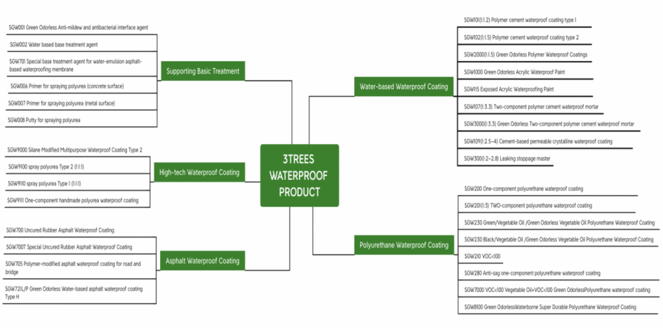 As a prestigious brand of green building materials in China, 3TREES is committed to building a one-stop integrated system of green building materials in the engineering field, including interior and exterior wall coatings, waterproofing products, insulation materials, industrial coatings, floor coatings, new materials for home furnishings, auxiliary materials, and construction services, and in the retail field, we have built a seven-in-one solution of emulsion paints, art paints, beautiful countryside, adhesives, auxiliary materials, waterproof coatings and Xiaosen High-tech boards, which provides products and immediate living services for the good life.